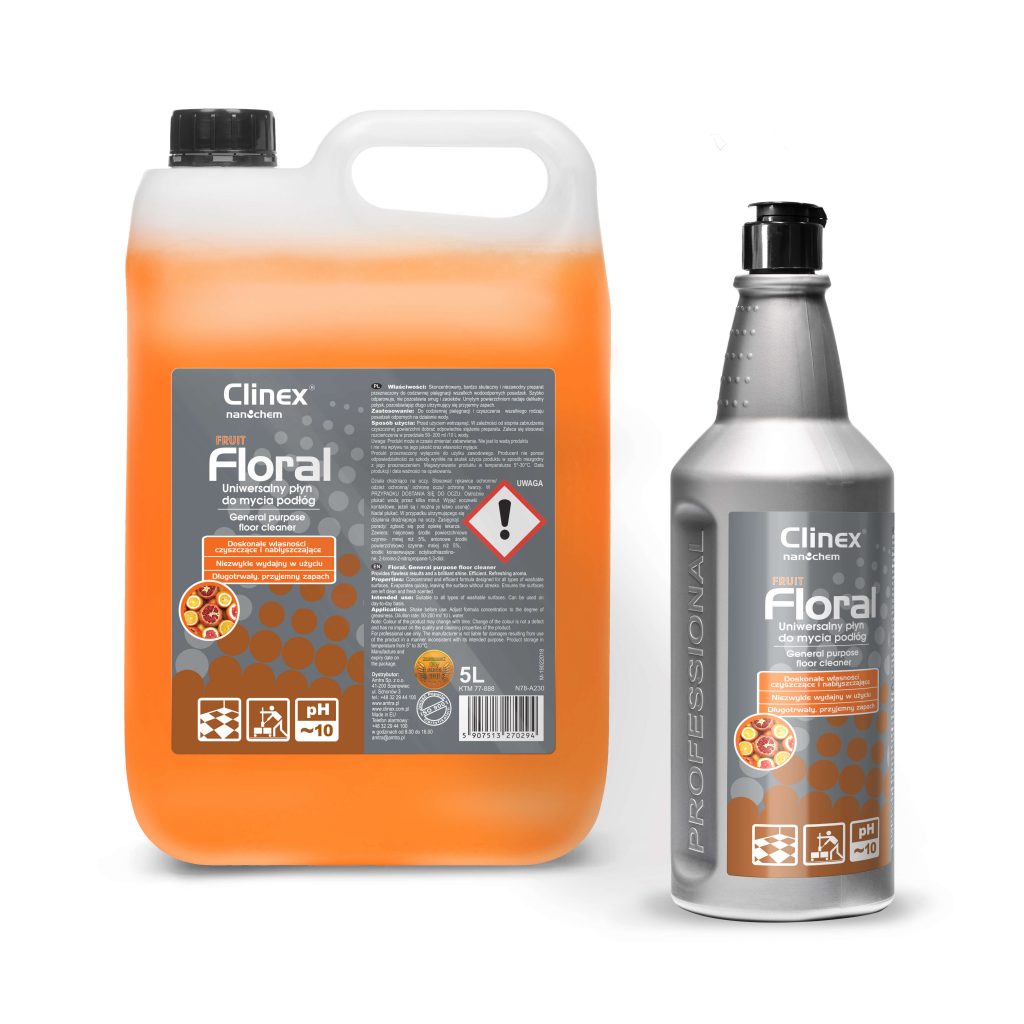 Clinex Floral Fruit to skuteczny i niezawodny płyn do podłóg przeznaczony do codziennej pielęgnacji wszelkiego rodzaju zmywalnych posadzek. Konserwuje oraz dzięki składnikom antystatycznym, zapobiega ponownemu przyleganiu kurzu i brudu. Wydajny i bardzo skuteczny, pozostawia gładkie, lecz nie śliskie podłogi. Clinex Floral Fruit odświeża myte powierzchnie nie pozostawiając smug. Pozostawia przyjemny, długotrwały zapach.