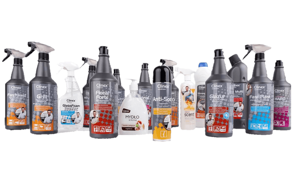 Nasza oferta opiera się na produktach marki Clinex Nanochem, to profesjonalne środki utrzymania czystości. Przeznaczone są do użytkowania w zakładach przemysłowych, handlowych, usługowych w obiektach sektora hotelarskiego, biurach, szkołach, halach. Marka oferuje możliwość stworzenia indywidualnych planów higieny wg systemu HACCP. Clinex to polska marka, niezawodna jakość w połączeniu z atrakcyjnymi cenami.